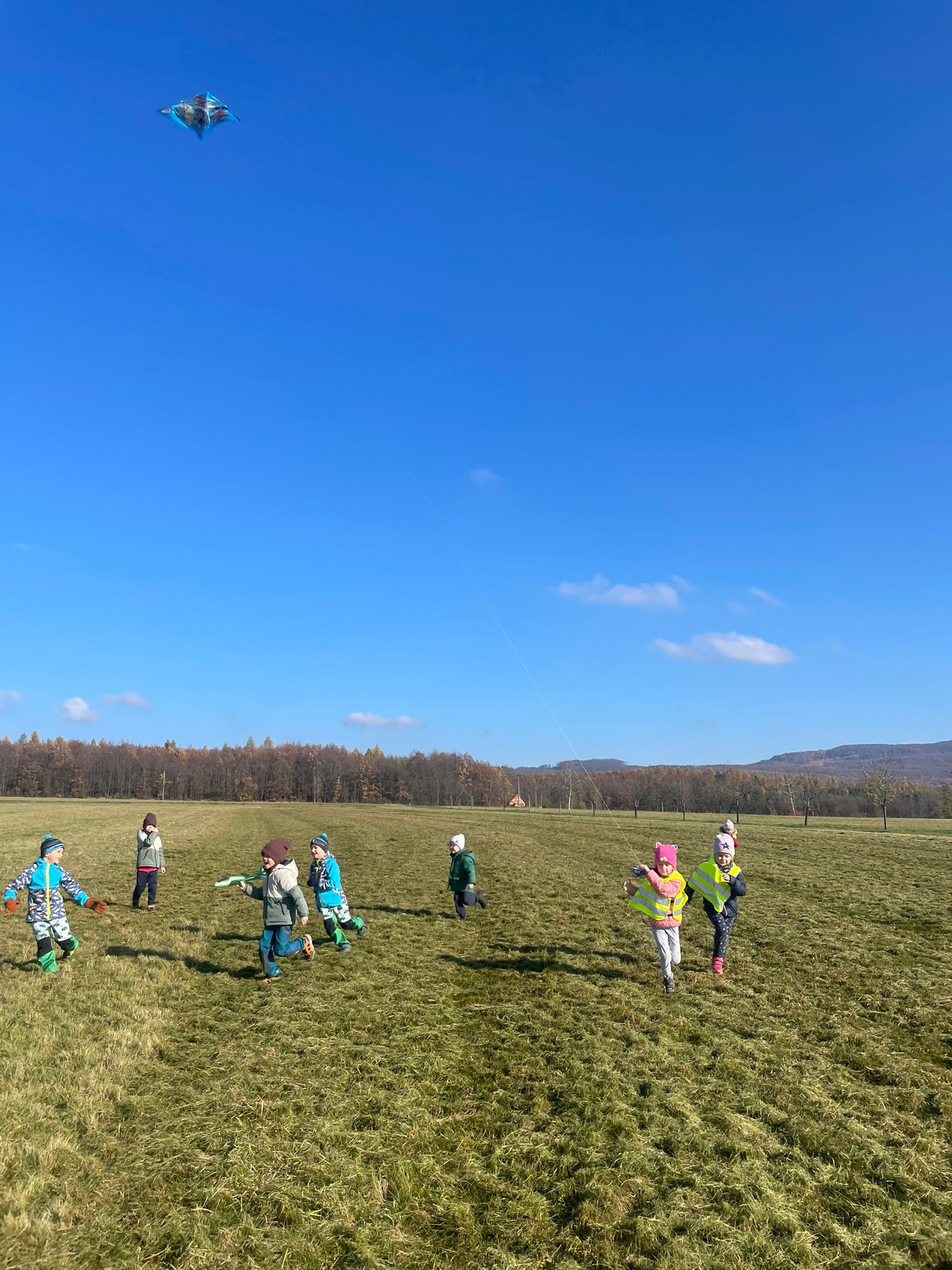 V pátek 7. listopadu 2025 jsme završili tematický týden „Není drak jako drak“ venkovní aktivitou – pouštěním draka na louce. Děti si to moc užily – vítr nám přál, drak se krásně vznášel a všichni jsme si odnesli spoustu radosti a zážitků.